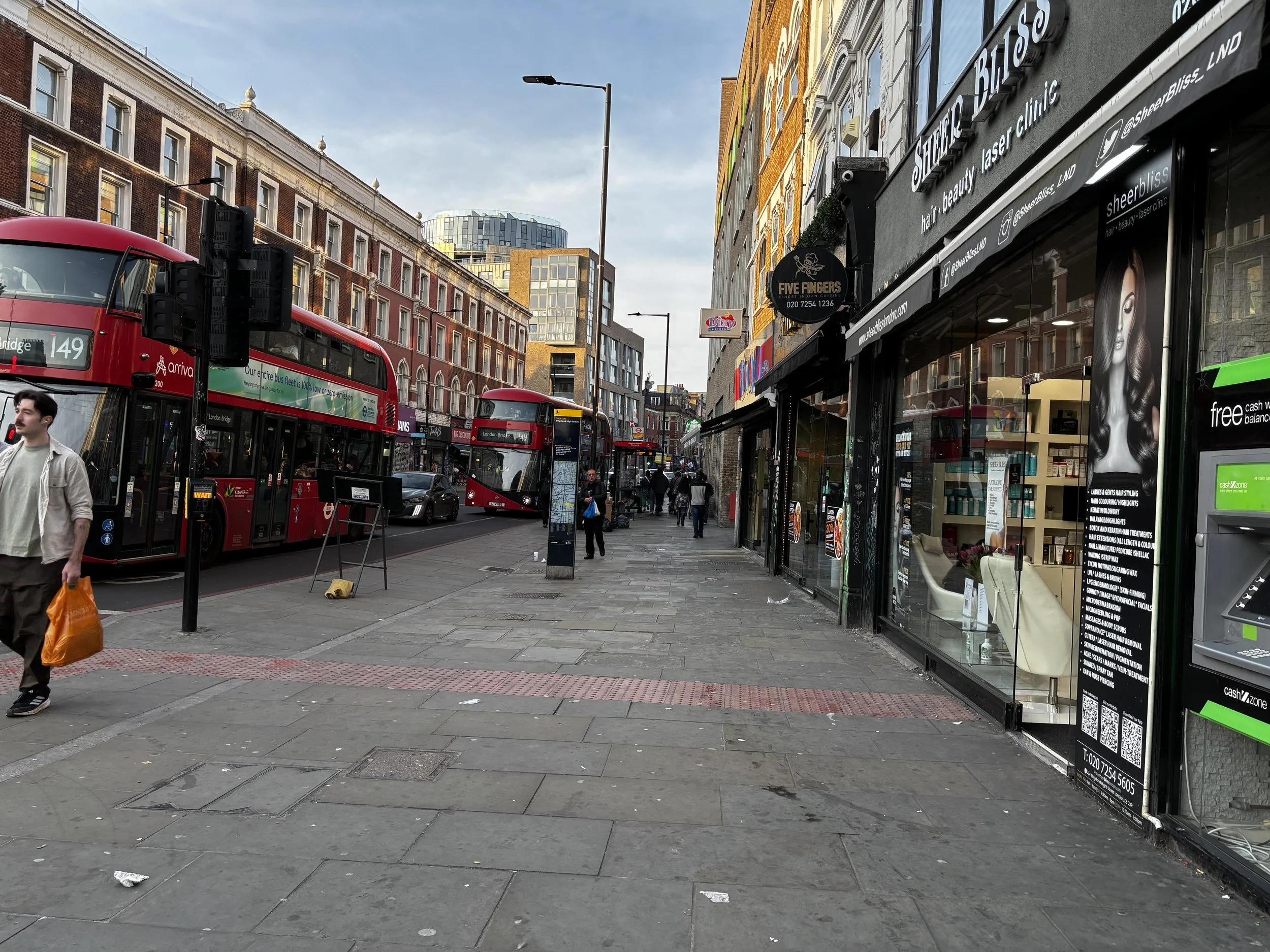 5 walk down the street until you see a brown fence on the right hand side then look for the black door on the right.