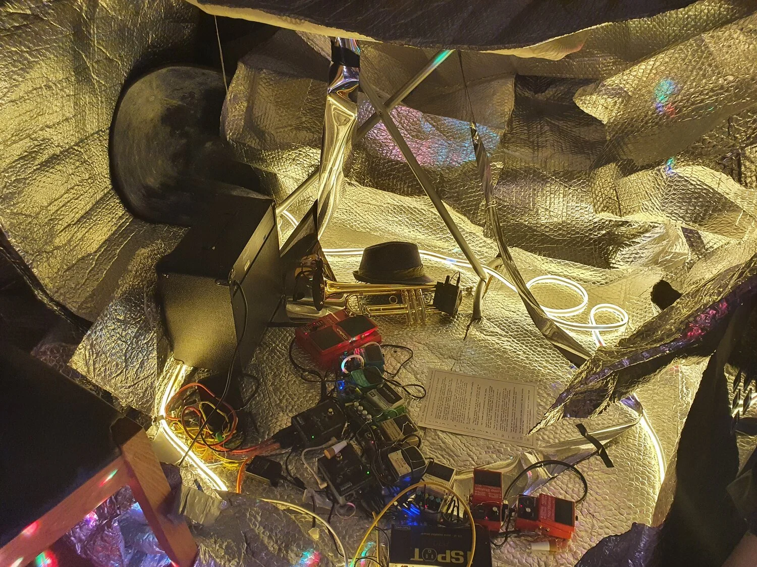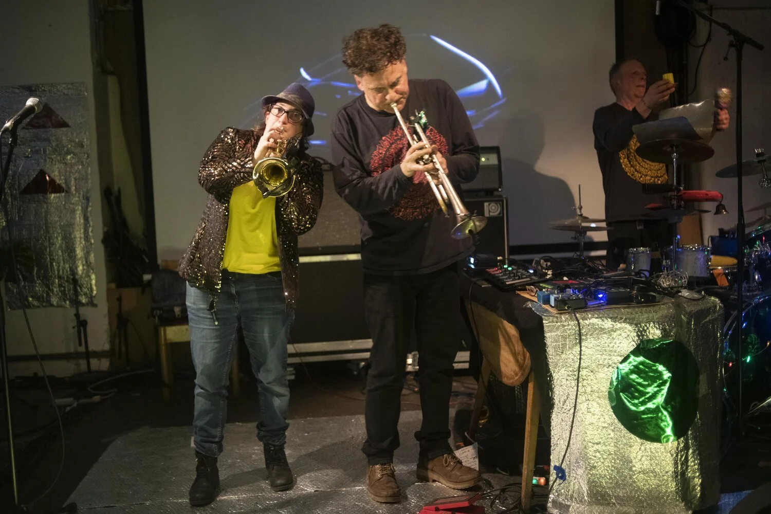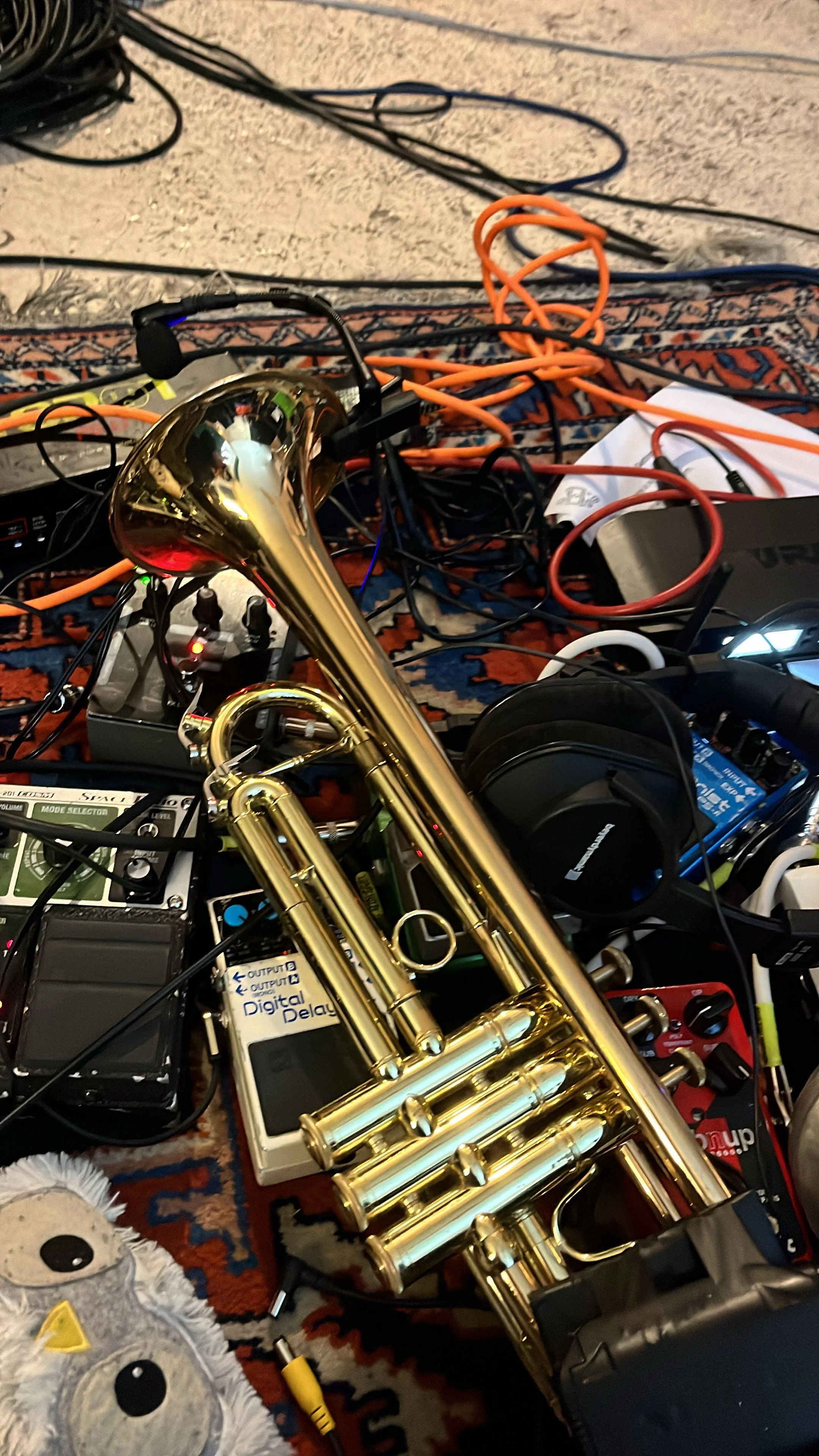 Played a set with Mariam Rezaei on turntables and me on space Trumpet .