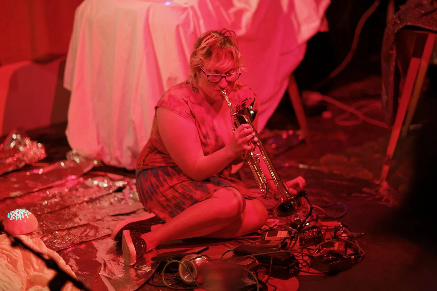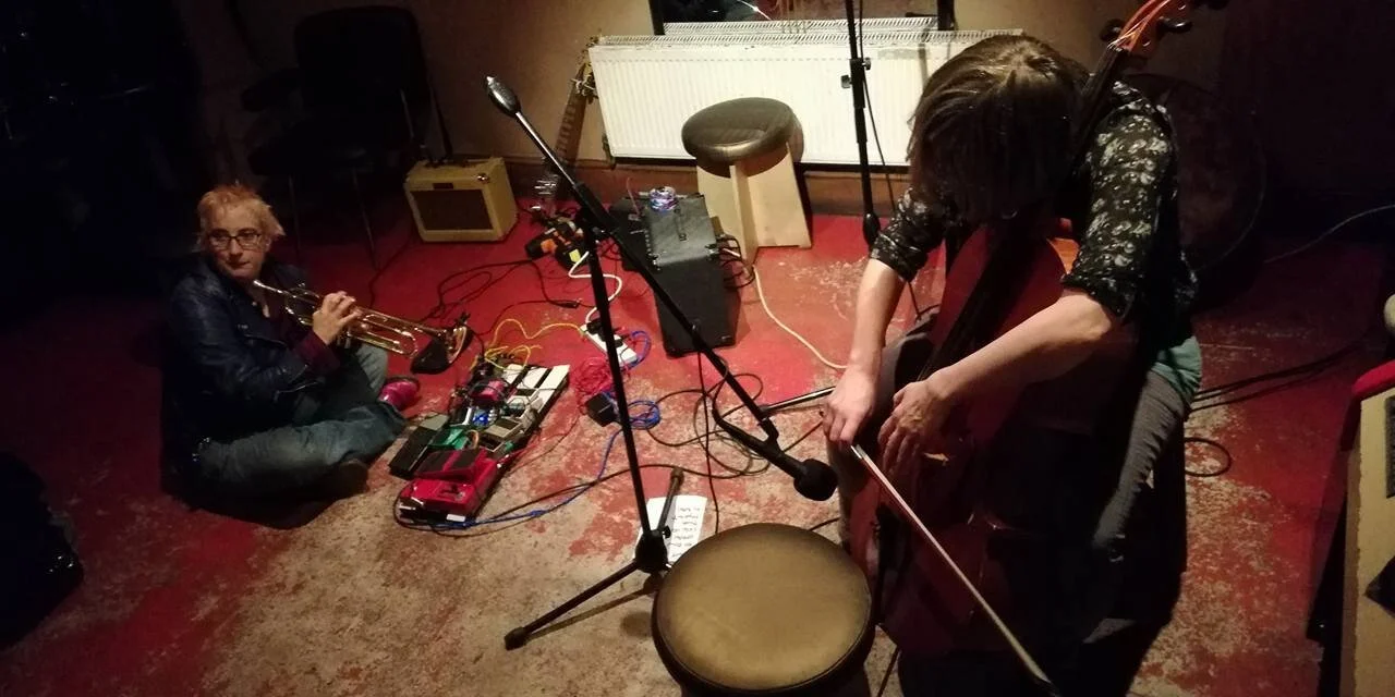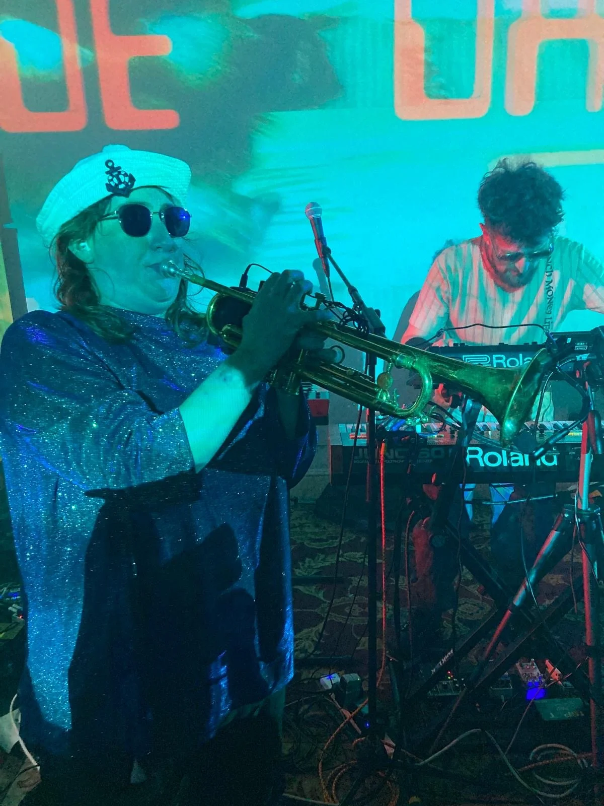 Played a set with Mariam Rezaei on turntables and me on space Trumpet .