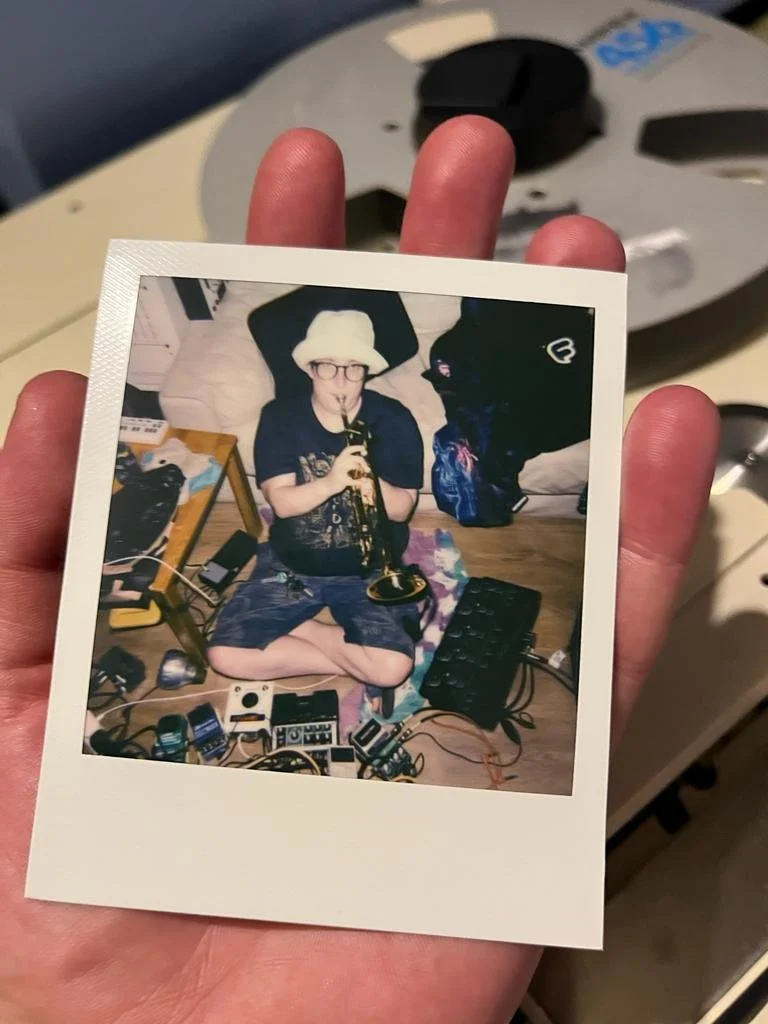 Started making a album with Danalogue .this is a polaroid Dan took of me during our first recording session in september 2023.