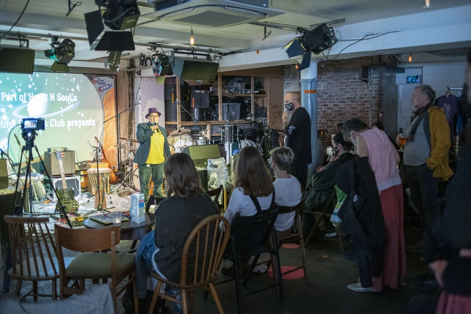 Spaceheads played at Robyn’s Rocket and I played with them . This was the first of 6 shows funded by the arts council England and help musicians UK
